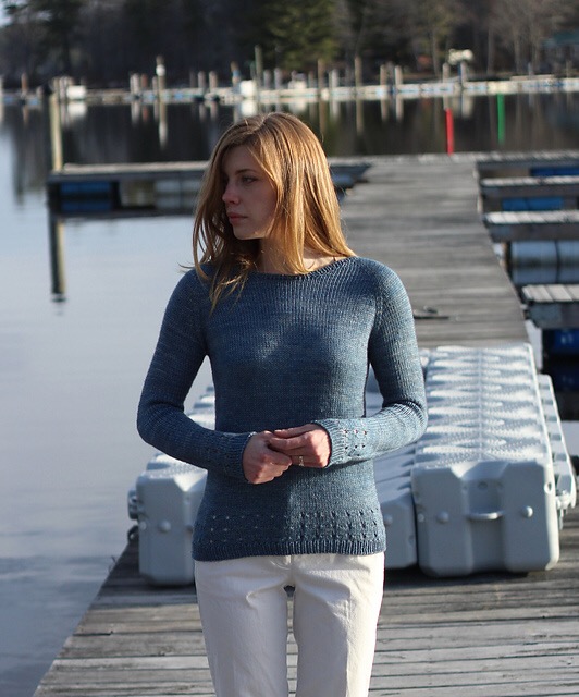 Breakaway is a top down pullover that features a wide boat neck, raglan style sleeves, and a delightful eyelet mesh down the back as well as at the cuffs & hemline. Worked in DK weight yarn, it will provide just the right amount of warmth for those early morning or late evening walks in the wind. Visit the ravelry pattern page for additional details and beautiful photos.